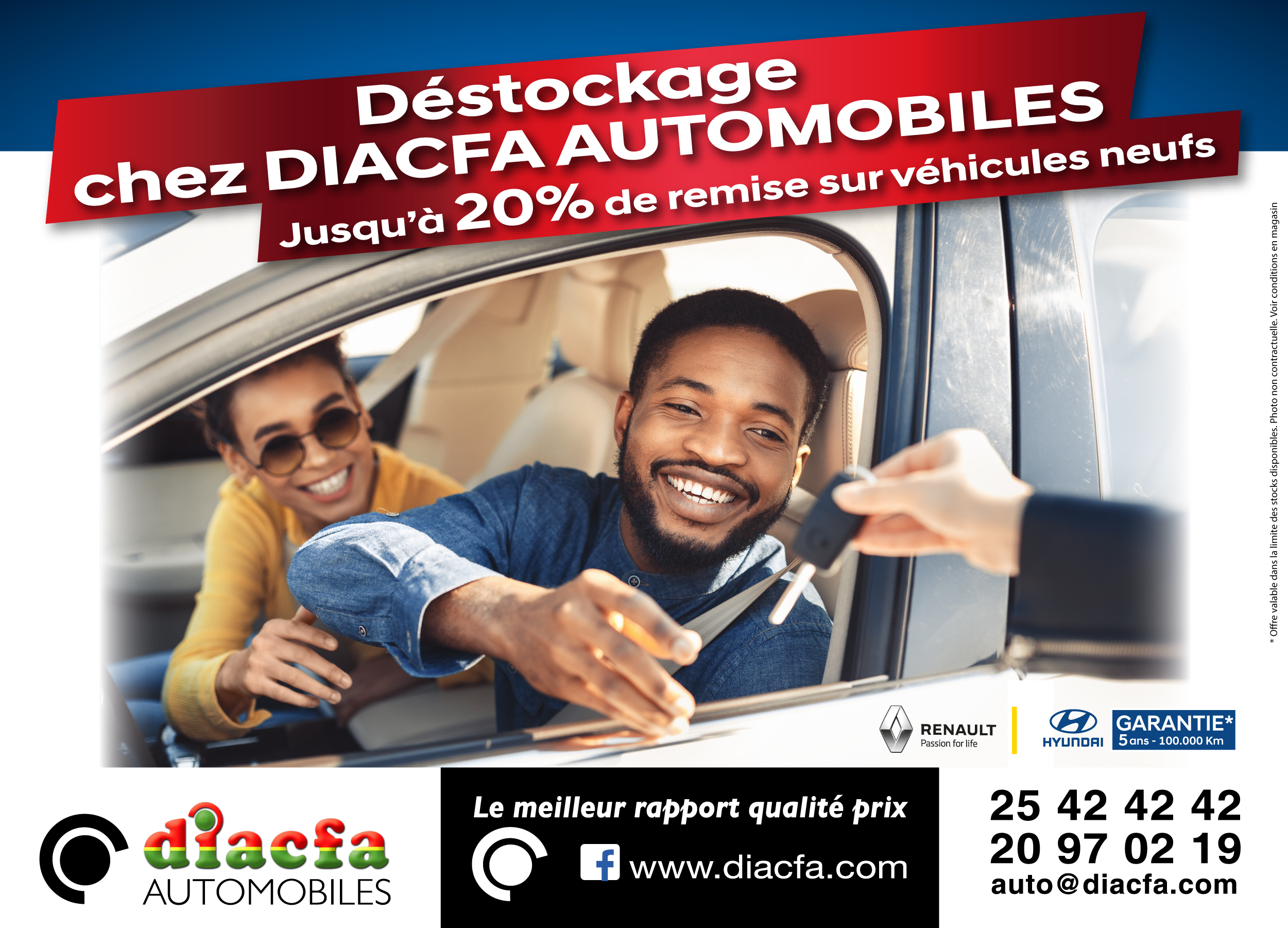 DIACFA AUTOMOBILES est situé non loin de l’échangeur de Ouaga 2000, sur le boulevard Tansôba Reongo de la ZAD, ouvert du lundi au vendredi de 7h30 à 12h et 15h à 18h, le samedi de 9h à 12h.
