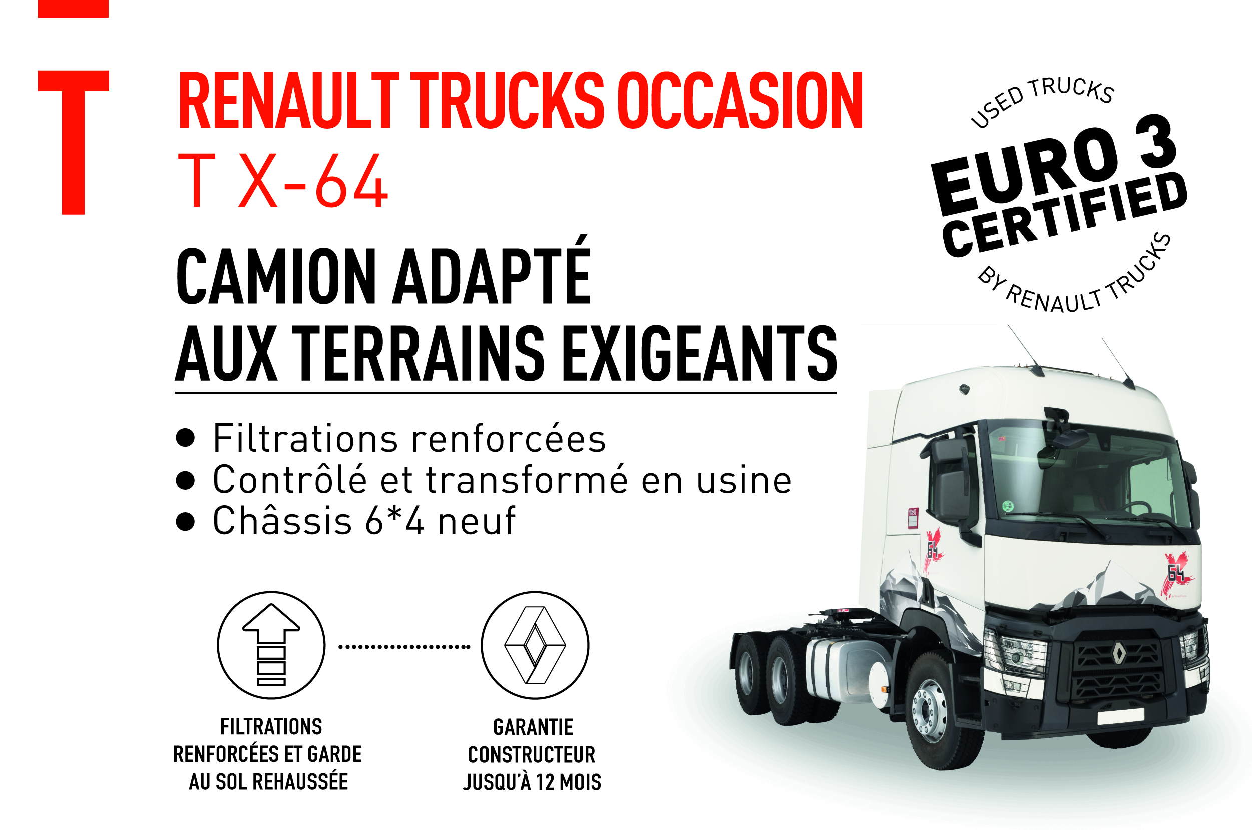 Renault Trucks lance un nouveau modèle de camion d’occasion transformé dans son usine de Bourg-en-Bresse : le Renault Trucks T X-64 Euro III dédié aux marchés aux conditions climatiques difficiles.